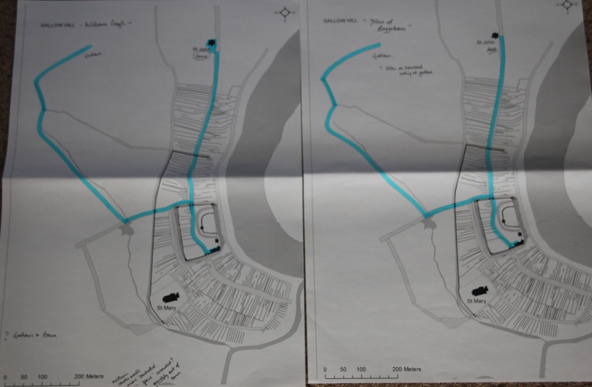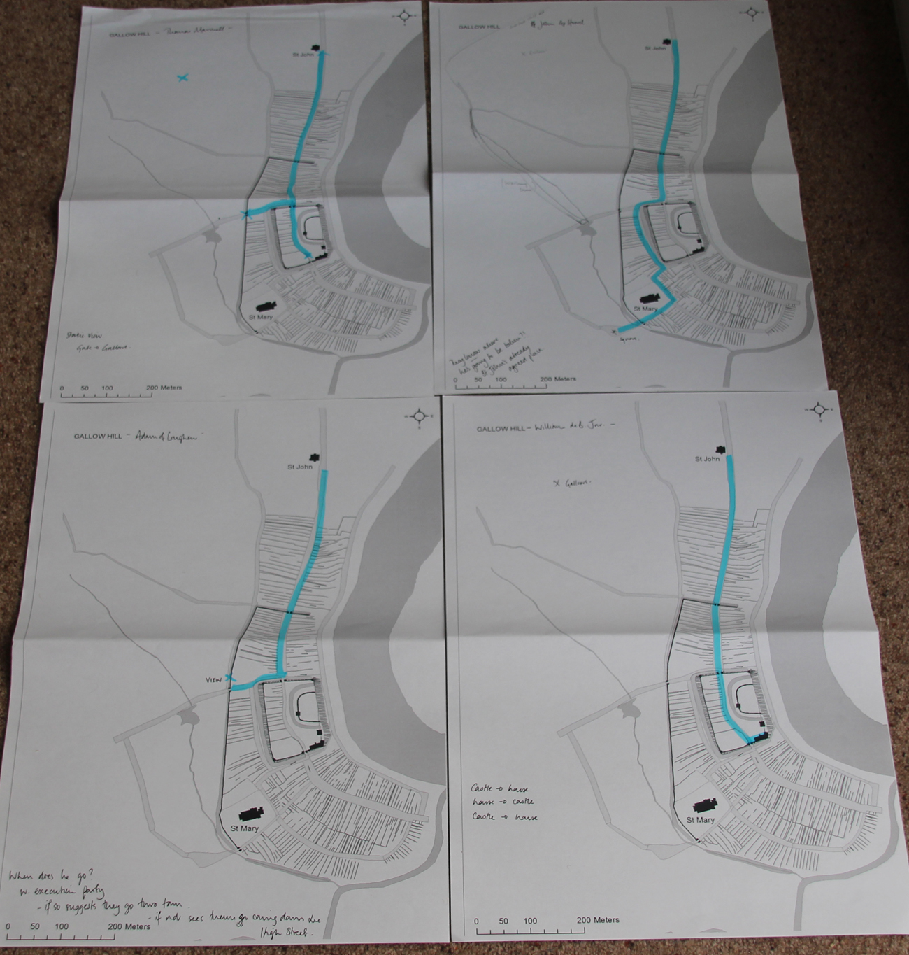 Firstly, although they describe many events which took place during the day, Mary de Briouze, William of Codineston, and Henry Skinner only actually witnessed events from single static points – namely the castle and the foot of the gallows. This realisation reinforces further the fact that the majority of their testimony is necessarily based upon what they heard – rumours and public opinion.