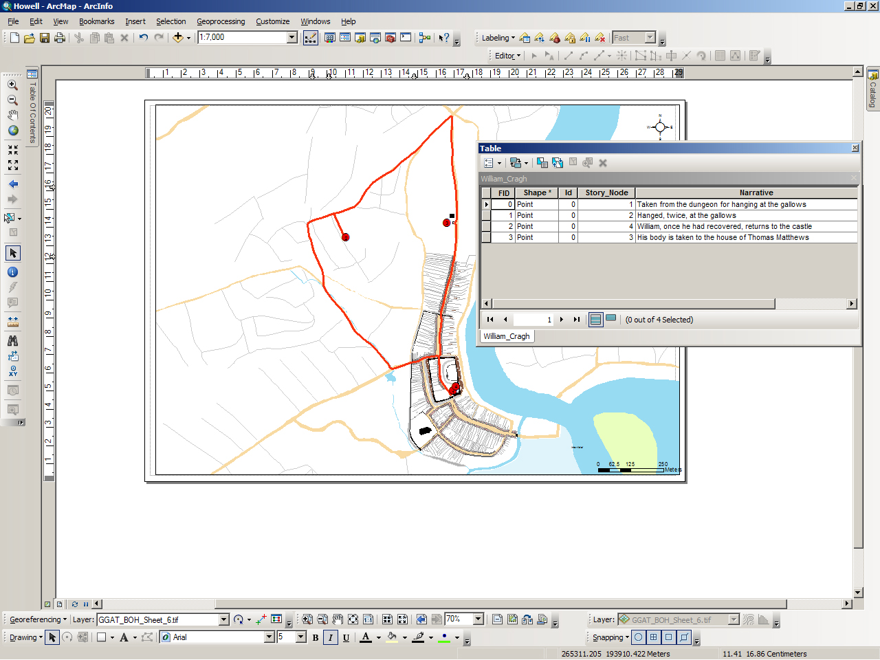 In December, Gareth and I met to bring the text and maps together for the first time – and what a revelation it proved to be. Although I have now read and re-read the witness statements many times, it was not until I saw the routes drawn out on the maps for the first time that the differences in the geographical locations and viewpoints between the characters finally became clear.