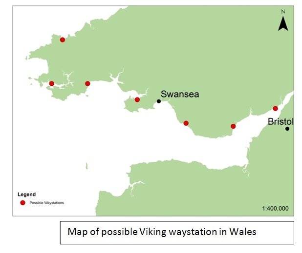 Sheehan et al suggest the existence of Scandinavian settlements all along Ireland’s western coast, linking Limerick all the way to Dublin and using historical and toponomastic evidence have identified a dozen or so possible way-stations. So if we accept this premise of the necessity of a series of way-stations along the coast between the major trading towns and apply it to Wales, using the data already collected, a series of probable areas of Viking settlement can be identified. With its wide natural harbour, Swansea would be an obvious one of these waystations in south Wales.